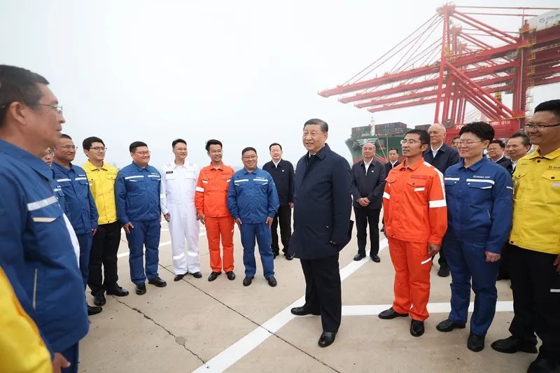 22日下午,習近平首先來到日照港考察。日照港是重要的能源和大宗原材料中轉基地,近年來推進智慧化、綠色化建設,建成順岸開放式全自動化集裝箱碼頭。習近平聽取山東省港口發(fā)展建設和日照港規(guī)劃布局等情況介紹,并察看全自動化集裝箱碼頭作業(yè)場景。他說,日照港是改革開放后新建的港口,近年來推進科技創(chuàng)新,將傳統(tǒng)港口改造升級為現(xiàn)代化港口,不僅貨物吞吐量躋身全國前列,還積累了通過傳統(tǒng)產業(yè)改造升級發(fā)展新質生產力的經驗,值得肯定。習近平親切慰問港口科技工作者、運營人員、航運人員,希望大家再接再厲、繼續(xù)奮斗,推動日照港管理運營更上一層樓。