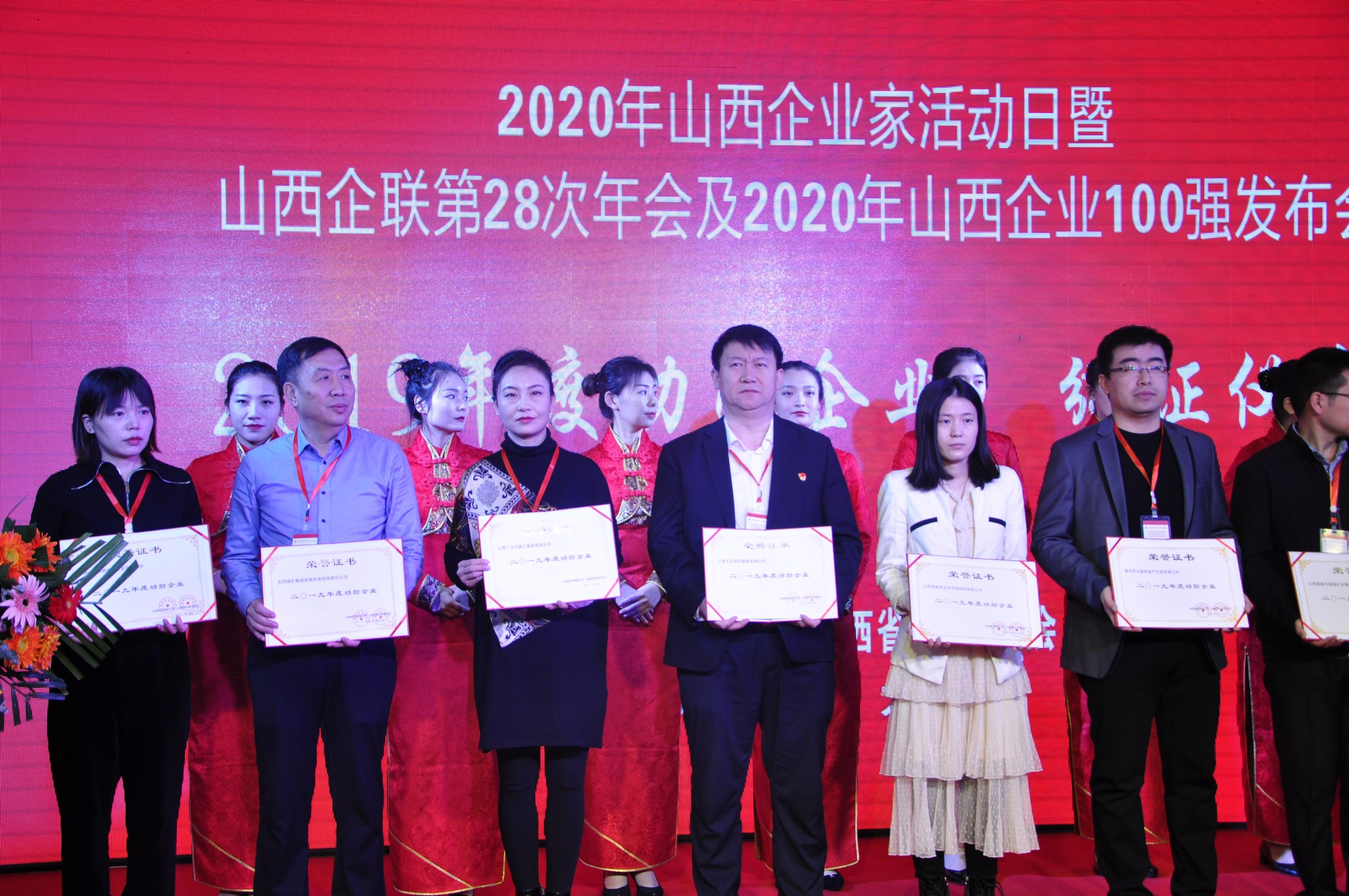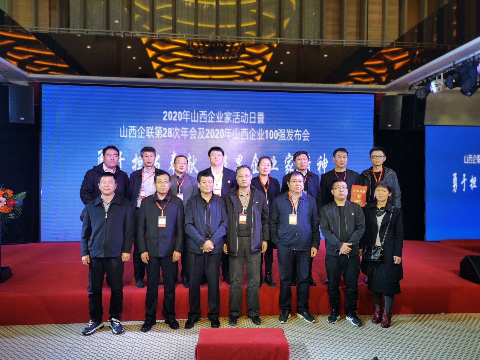 11月6日,以“勇于擔當奉獻、彰顯企業(yè)家精神、促進變革中的大企業(yè)發(fā)展 ”為主題的2020年山西企業(yè)家活動日暨山西企聯(lián)第28次年會及2020年山西企業(yè)100強發(fā)布會在太原舉行。山西大正保安服務(wù)有限公司榮膺“2020山西服務(wù)業(yè)企業(yè)100強”、“2019年度功勛企業(yè)”兩項榮譽稱號;公司黨委書記、董事長張躍生榮獲“2019年度功勛企業(yè)家”。公司黨委副書記、總經(jīng)理趙培宏,黨委副書記、副總經(jīng)理陳志平前往參會。趙培宏作為獲獎企業(yè)代表上臺領(lǐng)取“2019年度功勛企業(yè)”獎項。
