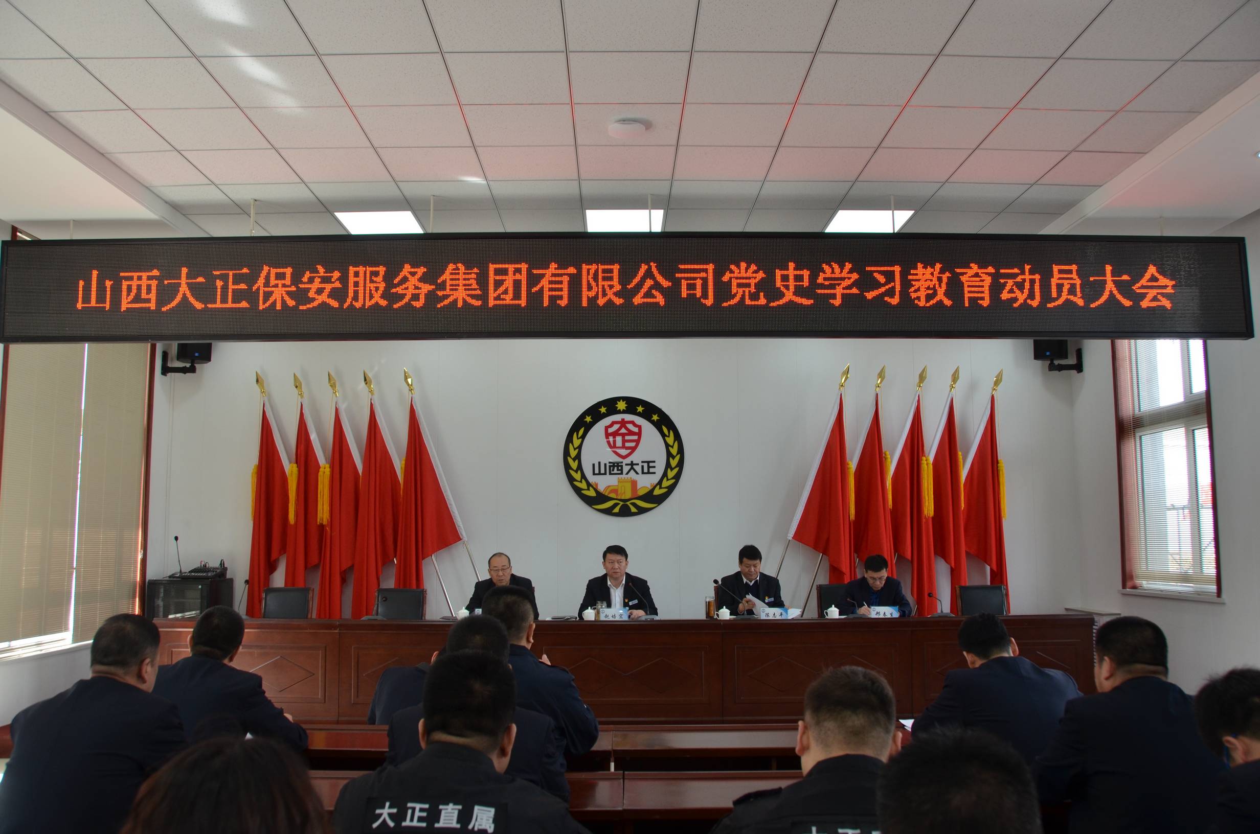 3月29日上午,山西大正保安服務(wù)有限公司召開黨史學(xué)習(xí)教育動(dòng)員大會(huì),深入學(xué)習(xí)貫徹習(xí)近平總書記在全國黨史學(xué)習(xí)教育動(dòng)員大會(huì)上的重要講話精神,認(rèn)真落實(shí)市委、市國資委黨委動(dòng)員大會(huì)精神,結(jié)合公司實(shí)際對(duì)開展黨史學(xué)習(xí)教育進(jìn)行全面動(dòng)員部署。公司在家的領(lǐng)導(dǎo)班子成員、中層副職以上管理人員、各基層黨組織負(fù)責(zé)人及黨員代表參會(huì),公司黨委副書記、總經(jīng)理趙培宏主持會(huì)議。