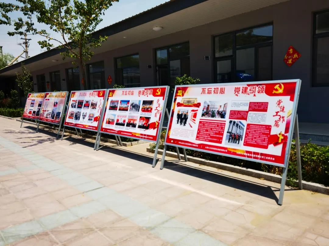 公司大院紅旗飄揚,慶祝中國共產(chǎn)黨成立100周年“百年華誕、世紀獻禮”大型標識牌奪目耀眼,二十三塊反映山西大正保安服務(wù)集團有限公司建企20周年展板向人們無聲講述公司20年來非凡成就。