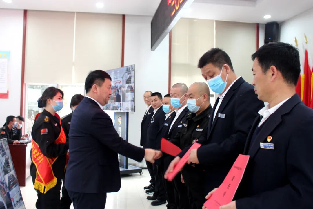 楊德華指出,過去的一年,大正集團(tuán)各項(xiàng)工作取得了比較好的成績,作為協(xié)助公安機(jī)關(guān)維護(hù)社會治安穩(wěn)定的重要輔助力量,大正保安集團(tuán)在服務(wù)治安防范工作、常態(tài)化疫情防控和搶險(xiǎn)救災(zāi)、大型活動安保等工作中作出了重要貢獻(xiàn)。隨后從進(jìn)一步深化思想認(rèn)識、進(jìn)一步提升服務(wù)水平、進(jìn)一步強(qiáng)化隊(duì)伍建設(shè)幾方面對今后的工作提出具體要求。鼓勵(lì)大家繼續(xù)發(fā)揚(yáng)艱苦奮斗的工作作風(fēng),緊密圍繞黨委政府中心任務(wù)開展工作,以協(xié)助公安機(jī)關(guān)做好黨的二十大期間社會穩(wěn)定為主線,團(tuán)結(jié)一心,奮力拼搏,以飽滿的熱情、昂揚(yáng)的斗志,續(xù)寫我市保安行業(yè)發(fā)展的新篇章,為全市治安社會大局持續(xù)穩(wěn)定做出新的更大貢獻(xiàn)。