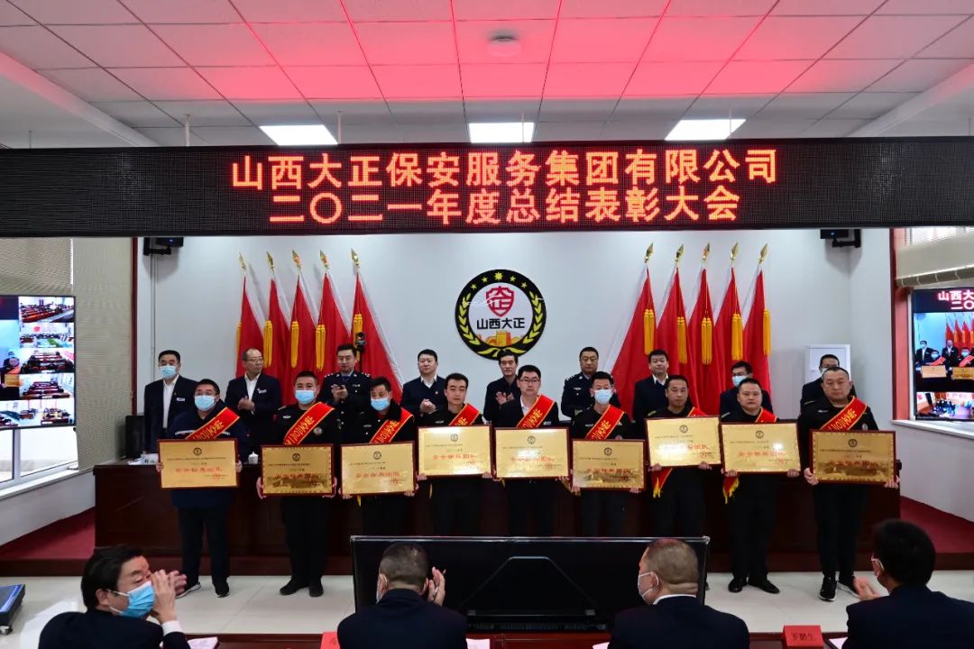 王明生宣讀《山西大正保安服務(wù)集團(tuán)有限公司二0ニ一年度“雙先”評比表彰決定》。隨后進(jìn)行了頒獎(jiǎng)儀式。對受表彰的2021年度先進(jìn)單位、先進(jìn)集體、安全標(biāo)兵團(tuán)隊(duì)、新聞報(bào)道先進(jìn)單位、先進(jìn)班(車、庫)組、優(yōu)秀管理者、先進(jìn)個(gè)人頒發(fā)獎(jiǎng)牌獎(jiǎng)狀證書。