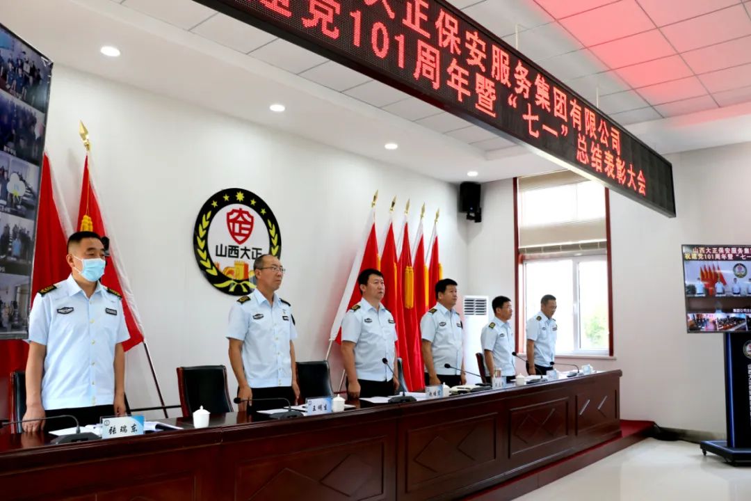 2022年6月30日上午,山西大正保安服務(wù)集團(tuán)有限公司召開慶祝建黨101周年暨“七一”總結(jié)表彰視頻會(huì)議,總結(jié)公司一年來黨建及其它各項(xiàng)工作,安排部署下一階段黨建及其它各項(xiàng)工作,表彰一批先進(jìn)基層黨組織、優(yōu)秀黨務(wù)工作者、優(yōu)秀共產(chǎn)黨員和黨風(fēng)廉潔先進(jìn)個(gè)人。動(dòng)員公司各級(jí)黨組織和廣大黨員干部職工進(jìn)一步統(tǒng)一意志、開拓創(chuàng)新、拼搏奉獻(xiàn)、扎實(shí)工作,推動(dòng)公司持續(xù)健康、快速發(fā)展,增強(qiáng)黨組織的創(chuàng)新力、凝聚力和戰(zhàn)斗力,推動(dòng)公司各項(xiàng)事業(yè)取得新成績(jī)、再上新臺(tái)階。