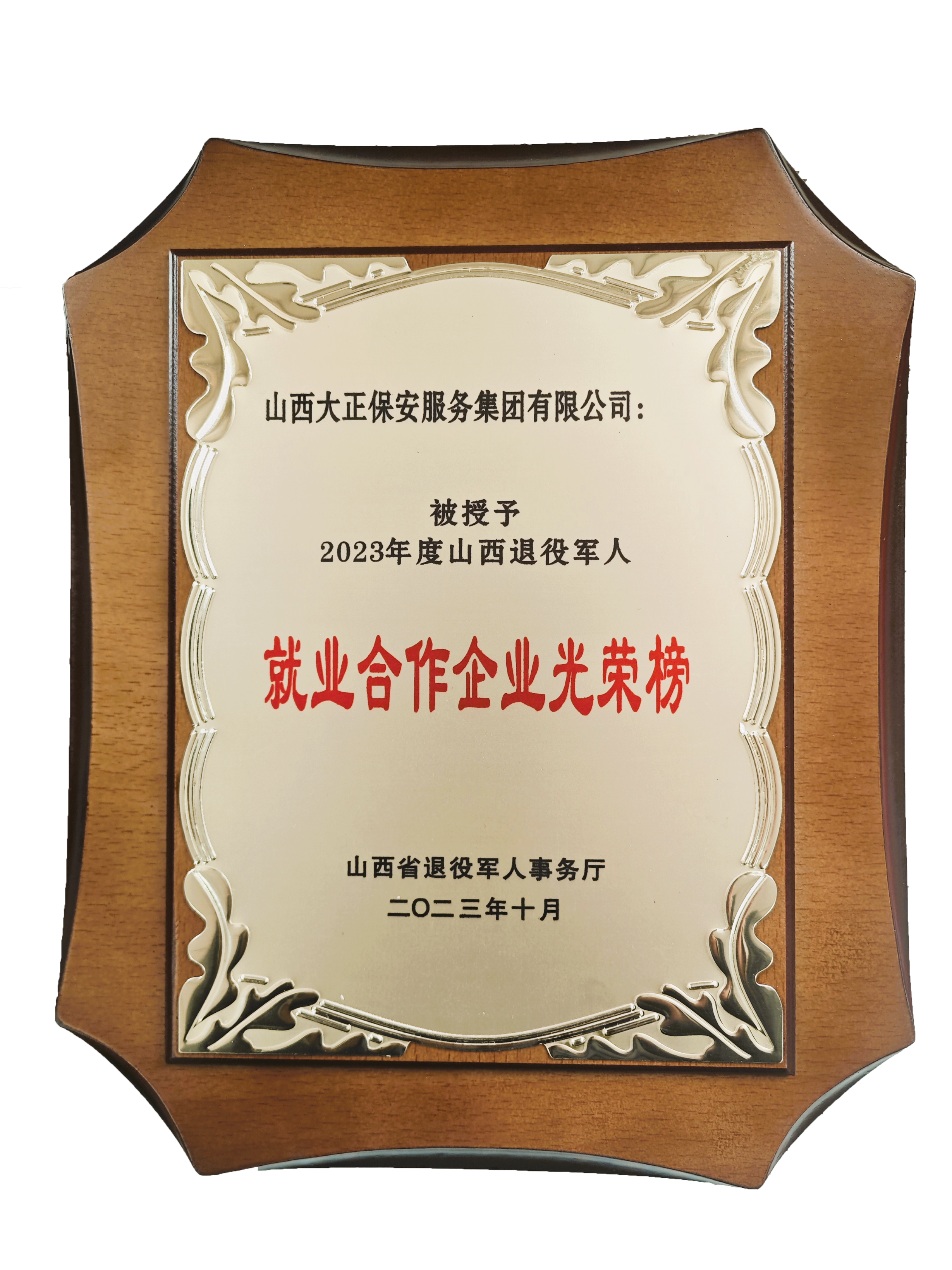 1月30日,受忻州市退役軍人事務(wù)局黨組書記、局長張耀民委托,忻州市退役軍人事務(wù)局黨組成員、副局長張培觀、四級調(diào)研員王樹康、三科科長張承香蒞臨公司,為集團(tuán)公司送上由山西省退役軍人事務(wù)廳頒發(fā)的“2023年度山西退役軍人就業(yè)合作企業(yè)光榮榜”獎(jiǎng)牌。