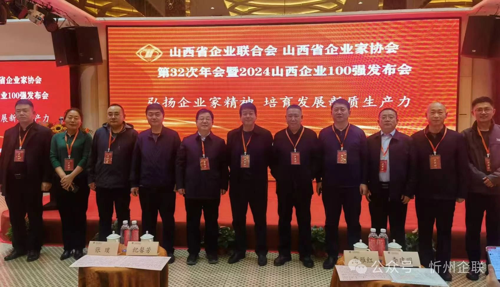 山西企聯(lián)第32次年會(huì)暨2024山西企業(yè)100強(qiáng)發(fā)布會(huì)于11月22日在太原市大昌國(guó)際酒店召開。會(huì)議以“弘揚(yáng)優(yōu)秀企業(yè)家精神,培育發(fā)展新質(zhì)生產(chǎn)力”為主題。山西企聯(lián)名譽(yù)會(huì)長(zhǎng)、省人大原黨組書記、常務(wù)副主任紀(jì)馨芳,山西企聯(lián)顧問、省政府原副主席李雁紅,山西企聯(lián)顧問、省政協(xié)原副主席張璞,中國(guó)企聯(lián)副秘書長(zhǎng)李建明等領(lǐng)導(dǎo)和500余名企業(yè)代表出席了會(huì)議。忻州市二十家企業(yè)上榜 ,忻州企聯(lián)會(huì)長(zhǎng)陳志平率隊(duì)參會(huì)。