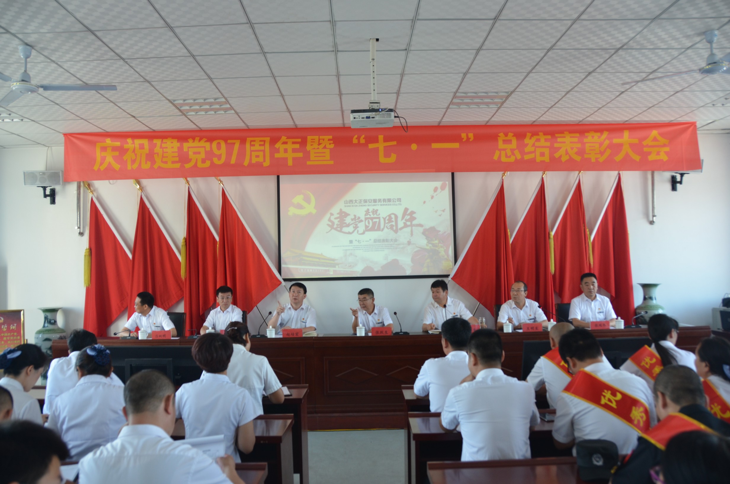6月30日,公司召開(kāi)慶祝建黨97周年暨“七·一”總結(jié)表彰大會(huì),機(jī)關(guān)全體黨員、管理人員,受表彰的先進(jìn)集體和先進(jìn)代表在主會(huì)場(chǎng)參加會(huì)議,公司所屬各單位(中心)全體員工分別在各自分會(huì)場(chǎng)參加會(huì)議。黨委委員、副總經(jīng)理王明生同志主持會(huì)議。