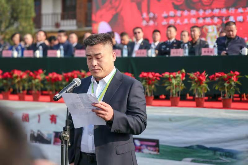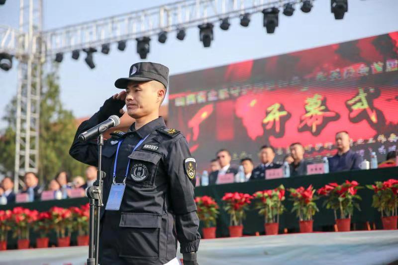 山西大正保安服務有限公司孫勇勇同志、太原神威守護押運公司張映輝同志分別代表參賽隊員、裁判員進行宣誓。