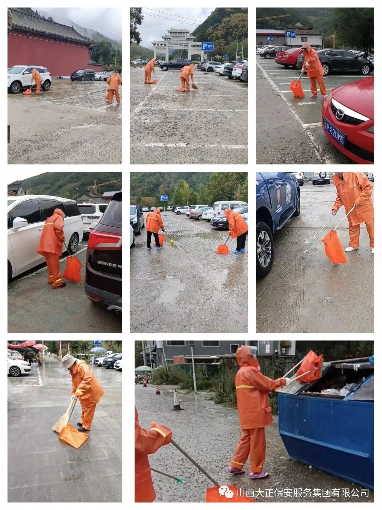 山西正大物業(yè)公司于8月26日正式進(jìn)駐五臺山風(fēng)景區(qū),雙方工作已進(jìn)入實(shí)質(zhì)性階段,8月27日,隨著五臺山景區(qū)內(nèi)雨勢的增大,正大物業(yè)工作人員時(shí)刻關(guān)注雨勢及景區(qū)動(dòng)態(tài),穿梭在景區(qū)的每個(gè)角落,針對景區(qū)積水區(qū)域進(jìn)行巡視檢查安全隱患,及時(shí)疏通堵塞,清掏干凈各個(gè)下水道的污物保障排水暢通,為防汛筑起第一道安全防線。