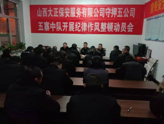 11月20日,接到關(guān)于下發(fā)《山西大正保安服務(wù)有限公司開展紀(jì)律作風(fēng)集中整頓活動(dòng)實(shí)施方案》的通知,保德中隊(duì)當(dāng)晚對文件精神進(jìn)行了傳達(dá)與學(xué)習(xí),并就文件精神要求,中隊(duì)上下統(tǒng)一思想,充分認(rèn)識(shí)本次工作紀(jì)律作風(fēng)整頓活動(dòng)的重大意義。
