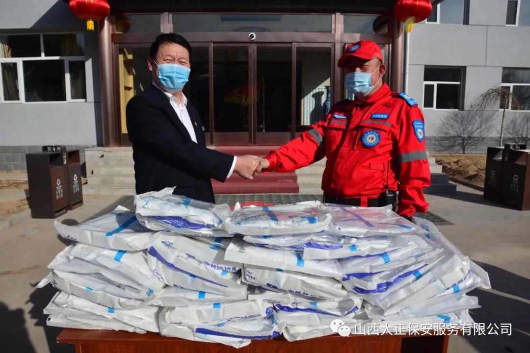 ——山西大正保安服務(wù)(集團(tuán))有限公司為應(yīng)急救援志愿者委員會山西忻州服務(wù)隊(duì)捐贈防疫物資