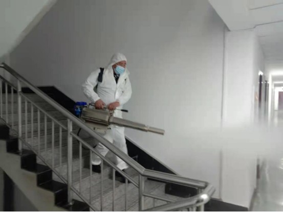 會(huì)后億通公司立即與藍(lán)天救援隊(duì)聯(lián)系,采用彌霧器等專用消毒設(shè)備,利用下班時(shí)間人員不在辦公場(chǎng)所時(shí)間,為兄弟單位、食堂進(jìn)行了全覆蓋、無死角、高強(qiáng)度的全面消毒。