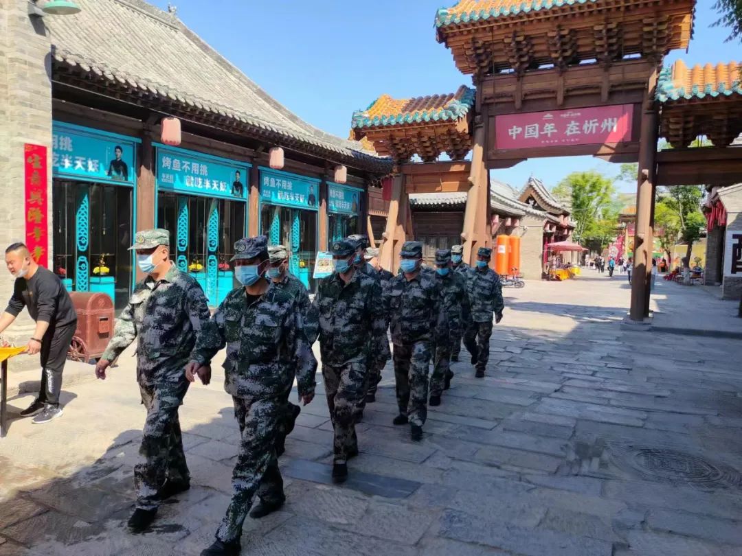 過(guò)節(jié)不忘使命,假期不忘戰(zhàn)備。五一勞動(dòng)節(jié)假日期間,受上級(jí)指示,忻府區(qū)人武部駐忻州市正大物業(yè)管理有限公司民兵應(yīng)急連進(jìn)行戰(zhàn)備執(zhí)勤,出動(dòng)三個(gè)排次每日巡邏于忻州古城的大街小巷,協(xié)助景區(qū)做好安保維穩(wěn)巡邏和疫情防控工作,確保游客平安游玩。