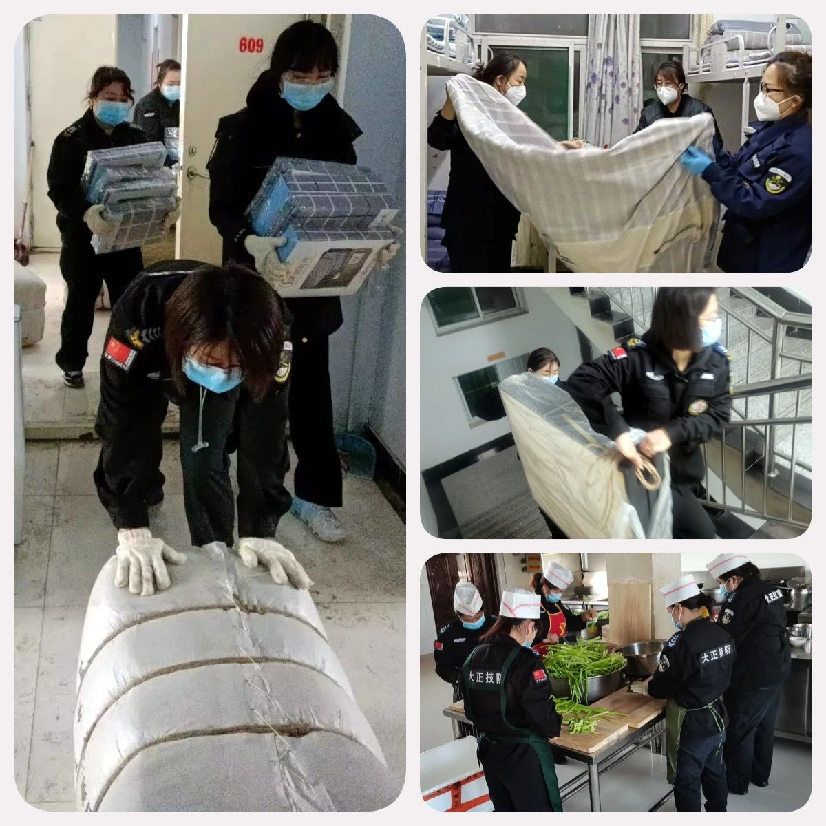 在這場沒有硝煙的戰(zhàn)爭中,大正的鏗鏘玫瑰們聽從公司指揮、勇毅“逆行”。在接到抗疫任務的第一時間便趕回工作崗位,得知需要24小時備戰(zhàn)執(zhí)勤時,她們和其他男同志一樣默默接受,沒有任何怨言。雖然她們已身為人妻人母,但是為了疫情防控的需要,她們選擇了和家人暫時的分離,無法顧及家里人的生活,一心抗疫。她們有的是辦公室人員、有的是監(jiān)控人員、有的是技防人員、有的是勤務指揮中心人員,她們都是普通的工作人員,家中有年邁的父母、年幼的孩子,有付出,也有虧欠......但面對疫情,她們做出了相同的選擇——那就是挺身而出,迎難而上,她們說:“既然選擇作為大正的保安,我們就要像其他男同事一樣沖鋒陷陣。”她們用實際行動詮釋著大正人的奮勇向前,彰顯了堅韌不拔的巾幗風采。