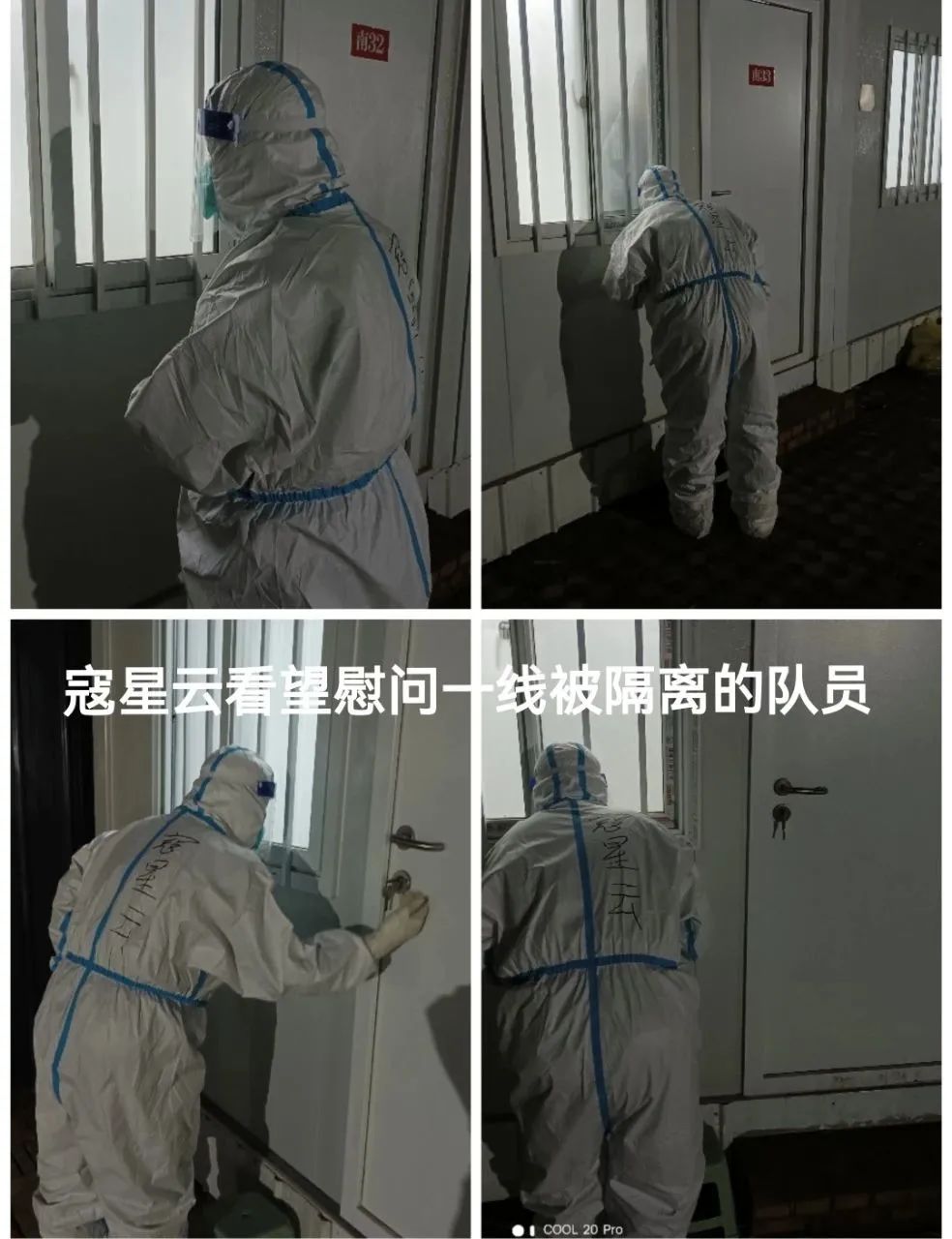 關(guān)心溫暖人心,關(guān)懷凝聚力量,領(lǐng)導(dǎo)的關(guān)心是對一線員工的最大安慰和精神鼓舞,組織的關(guān)懷是凝聚力量、激發(fā)斗志的不竭動力,不論是出征前的動員講話,還是送別隔離區(qū)一線隊(duì)員的鼓勵(lì)和問候,以及在微信群里的囑咐鼓勁,寇星云同志始終把大家的個(gè)人安危放在第一位,時(shí)刻叮囑隊(duì)員們必須做好自我防護(hù),確保自身安全,堅(jiān)決杜絕內(nèi)部感染傳播,只有自己安全才能更好地服務(wù)病患、服務(wù)好隔離人員,才能高質(zhì)量、高標(biāo)準(zhǔn)完成我們的使命任務(wù),才是對家人、對社會的真正負(fù)責(zé)。他鼓勵(lì)大家發(fā)揮守押隊(duì)伍能征善戰(zhàn)、沖鋒陷陣、挑戰(zhàn)自我,苦干實(shí)干的優(yōu)良作風(fēng),堅(jiān)定抗疫有我、戰(zhàn)疫必勝、疫情不散、堅(jiān)守陣地的信心和決心。對在工作中因勞累過度、身體受傷、出現(xiàn)不適的隊(duì)員更是關(guān)心備至、體貼入微,親自看望受傷隊(duì)員田振華,關(guān)心照顧因低血糖暈倒在一線的隊(duì)員吳彩霞,慰問在隔離宿舍和方艙隔離區(qū)因勞累過度出現(xiàn)身體不適的13名隊(duì)員,給他們送去生活用品,并和他們進(jìn)行親切地交談,帶去組織的關(guān)懷,領(lǐng)導(dǎo)的關(guān)心,凝聚人心,鼓舞士氣。