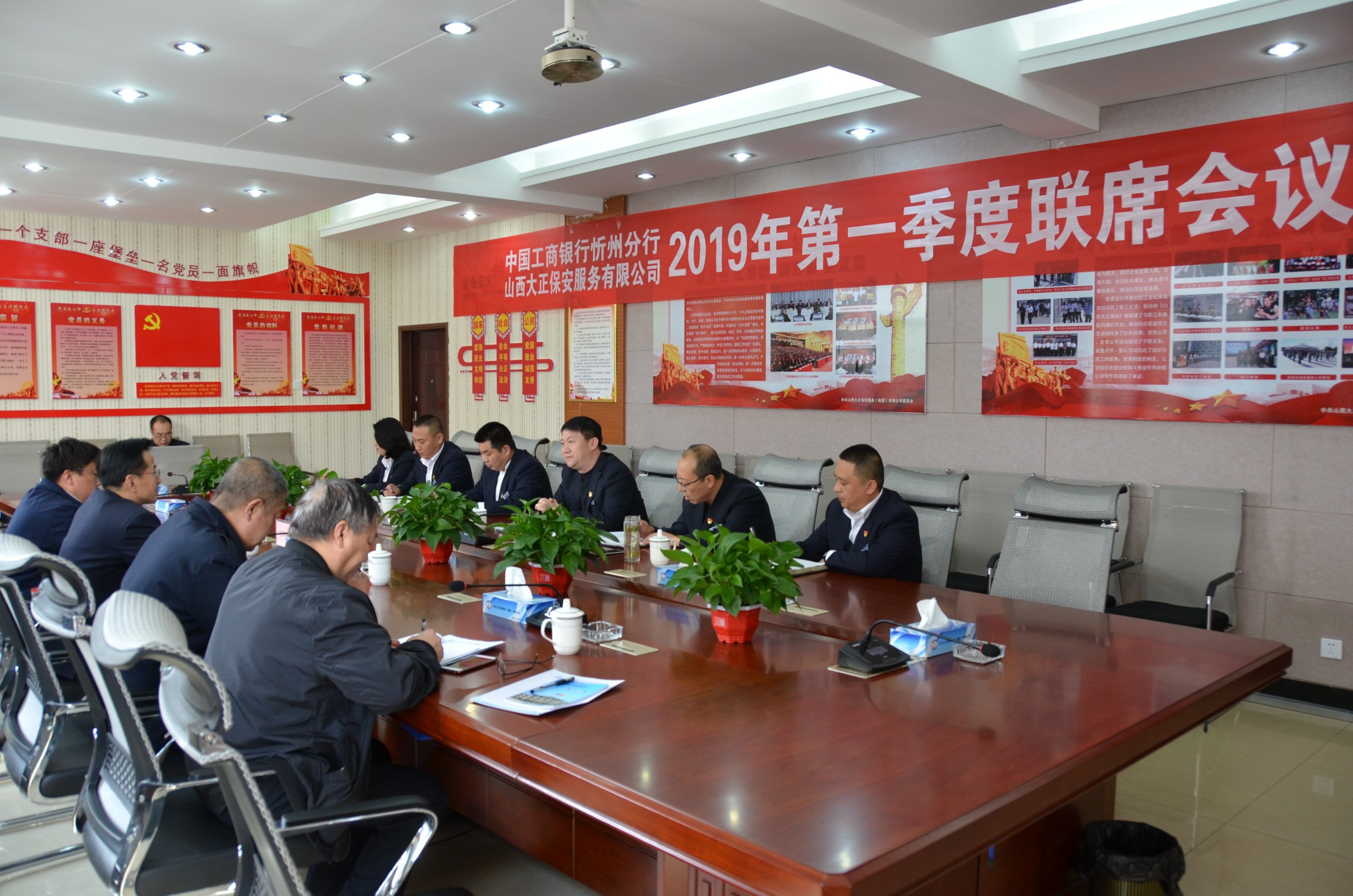 3月29日,公司與工行忻州分行召開2019年第一季度聯(lián)席會(huì)議。黨委委員、副總經(jīng)理趙培宏主持會(huì)議,工行忻州分行紀(jì)檢書記李榮杰,內(nèi)控安全保衛(wèi)部副經(jīng)理徐軍及公司黨委委員、副總經(jīng)理王明生,董事長助理、守押公司副總經(jīng)理寇星云等公司領(lǐng)導(dǎo)參加會(huì)議。