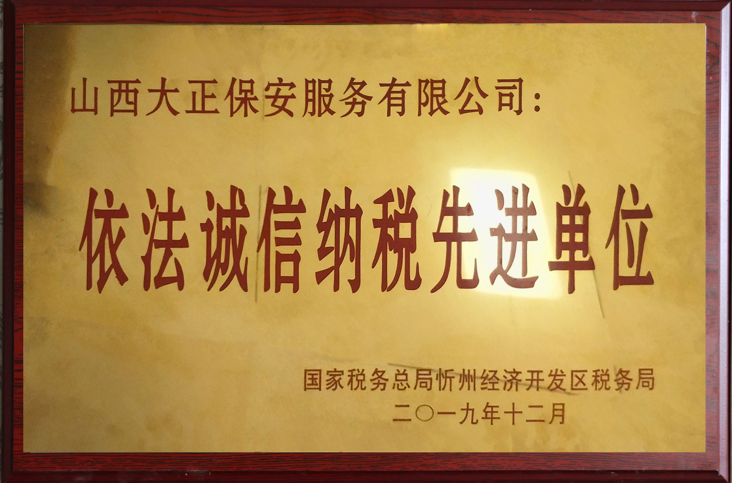 12月15日,國家稅務(wù)總局忻州經(jīng)濟開發(fā)區(qū)稅務(wù)局舉行2019年度“依法誠信納稅先進(jìn)單位”頒獎儀式。山西大正保安服務(wù)(集團(tuán))有限公司等9家企業(yè)榮獲2019年度“依法誠信納稅先進(jìn)單位”稱號。集團(tuán)公司黨委委員、副總經(jīng)理趙培宏代表公司參加儀式并上臺領(lǐng)獎。