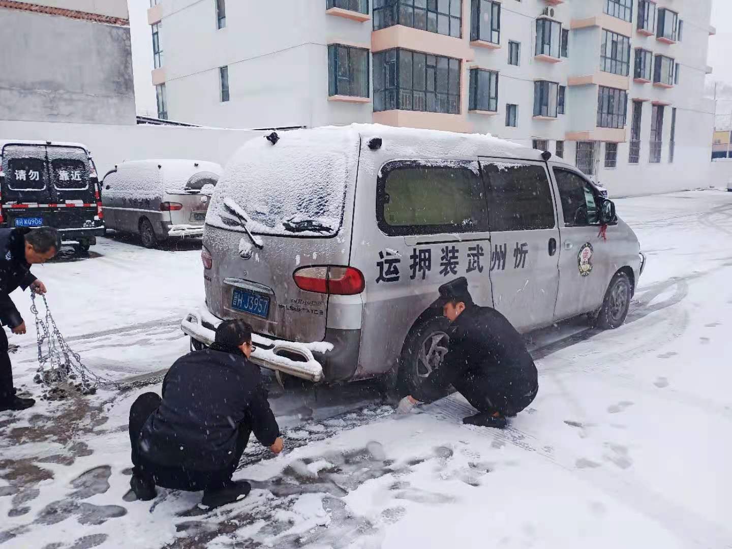 由于降雪天氣給運(yùn)鈔車安全行駛導(dǎo)致安全隱患,中隊(duì)每日關(guān)注天氣情況有效應(yīng)對,及時(shí)安排各車組提前做好出車前車輛安全檢查以及安裝防滑鏈,同時(shí)囑咐要注意車速,確保行車安全。安全無小事,每一次往返任務(wù)都牽動著公司領(lǐng)導(dǎo)的心。由于天氣惡劣,車隊(duì)出發(fā)后,中隊(duì)管理人員一步不離堅(jiān)守在崗位上,和各車組隨時(shí)保持著聯(lián)系,有時(shí)隊(duì)長、副隊(duì)長親自跟車,以便及時(shí)了解各車組途中的實(shí)際情況。