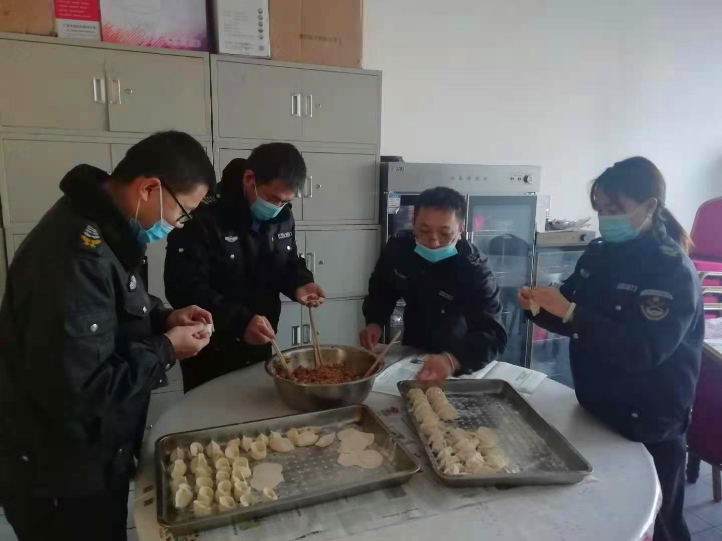 “冬至”是二十四節(jié)氣之一,中國(guó)北方大部分地區(qū)在這一天吃餃子、南方吃湯圓的習(xí)俗。為進(jìn)一步增進(jìn)職工團(tuán)隊(duì)合作精神,豐富全體職工的餐桌飲食生活,12月21日,時(shí)逢我國(guó)傳統(tǒng)節(jié)日冬至,為讓大家度過(guò)一個(gè)快樂(lè)而溫馨的節(jié)日,守押偏關(guān)中隊(duì)組織員工開(kāi)展迎冬至包餃子活動(dòng)。