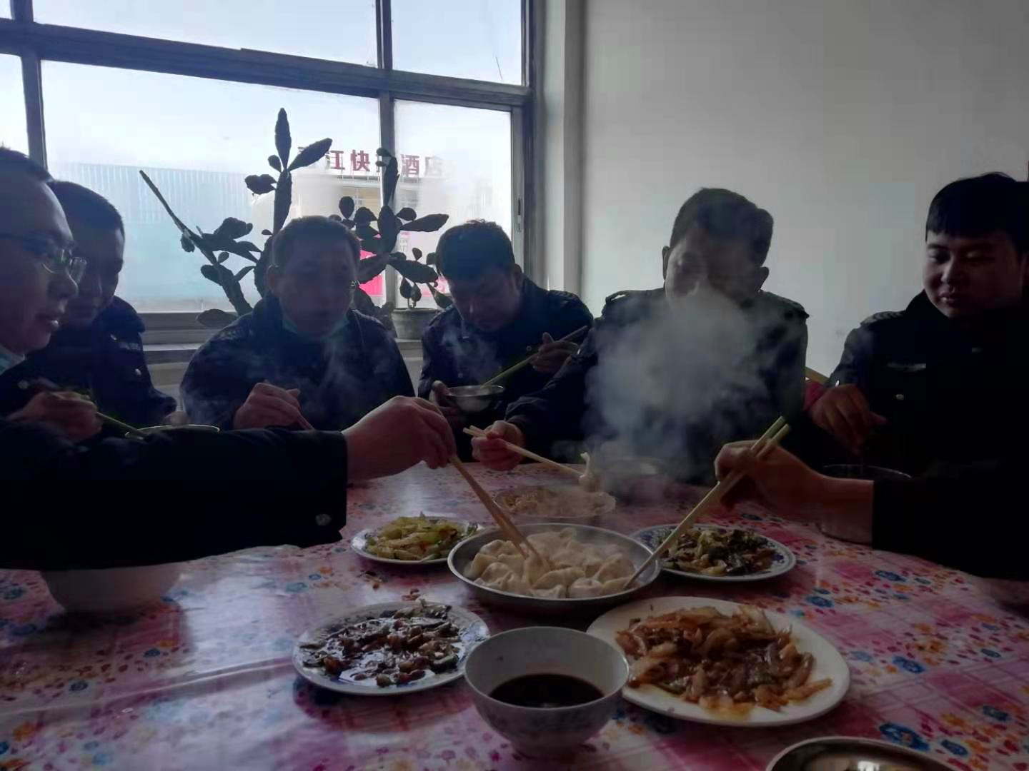 活動(dòng)中,大家熱情高漲,積極參與,鍋里熱氣騰騰的餃子香味都彌漫著整個(gè)餐廳,大家圍坐在桌子旁品嘗著代表著冬至這個(gè)節(jié)日的食物,滿(mǎn)心歡地感受著來(lái)自中隊(duì)的關(guān)愛(ài)。中午休息時(shí)間短,許多隊(duì)員來(lái)不及回家,但在中隊(duì)可以吃到噴香可口的餃子,大家心里都覺(jué)得暖暖的。