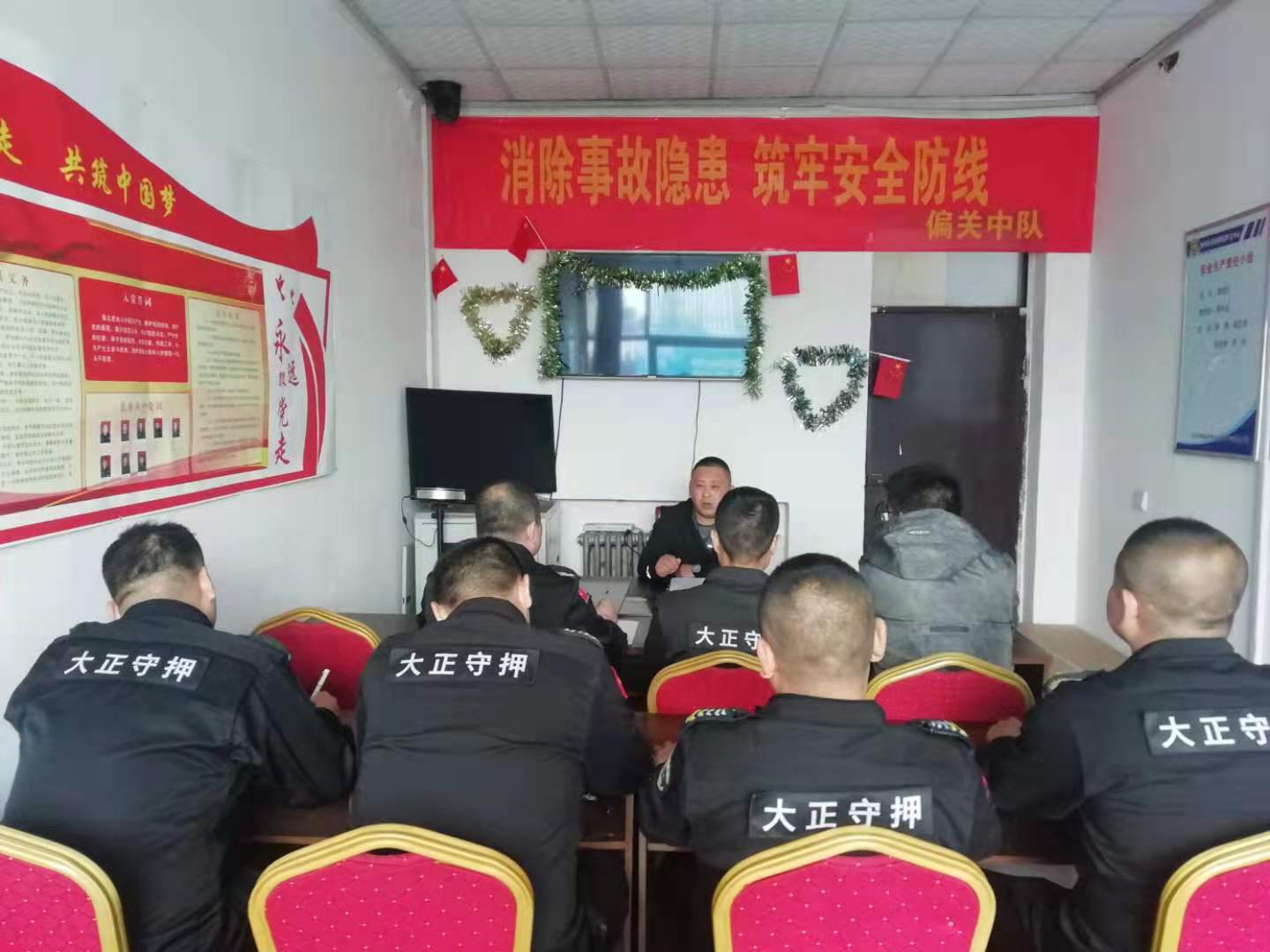 督導(dǎo)組通過實(shí)地檢查,對偏關(guān)中隊(duì)的各項(xiàng)安全設(shè)施和規(guī)范管理工作給予了充分肯定和高度評價,并對偏關(guān)中隊(duì)下一步的安全工作提出了具體要求:一是加強(qiáng)對重點(diǎn)部位的值守管理力度;二是對技防設(shè)施進(jìn)行檢查維護(hù),確保安防設(shè)施設(shè)備的正常運(yùn)轉(zhuǎn);三是高度重視槍彈保管工作,牢固樹立“槍彈無小事”的意識,全面落實(shí)各項(xiàng)槍支管理制度,嚴(yán)格執(zhí)行槍支管理規(guī)定和使用交接登記制度,務(wù)必確保槍支不出任何問題;四是牢固樹立安全防范意識,熟練掌握、定期組織各種應(yīng)急處置預(yù)案演練,提高安全防范和處置突發(fā)事件的能力;五是加強(qiáng)押運(yùn)人員的思想教育,嚴(yán)格落實(shí)談心談話制度,了解隊(duì)員思想動態(tài),及時發(fā)現(xiàn)和解決各類苗頭性、傾向性不穩(wěn)定因素,完善防范、化解和控制措施,確保押運(yùn)隊(duì)伍安全穩(wěn)定。