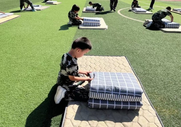 在為期三天的軍訓活動中,四位教官精心組織、細心教導進行了隊列隊形、軍體拳、內(nèi)務(wù)整理等科目訓練,同學們在教官的教導下不僅熟練掌握各項基本動作,同時還磨煉了同學們堅強的意志品質(zhì),幫助他們形成了良好的行為習慣。在匯報表演時,同學們整齊劃一的隊形隊列、反映迅速動作嫻熟的颯爽英資贏得了校領(lǐng)導和老師、家長代表的熱烈掌聲。