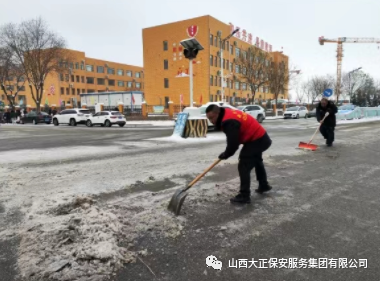 在支部書記張龍的帶領(lǐng)下,同志們冒著雪后嚴(yán)寒,掃帚鐵鍬齊上陣,分別在主干道、交通路口及辦公樓區(qū)域開展清掃積雪活動(dòng)。由于車輛碾壓,雪已凝結(jié)成冰,清理較為困難,但這些卻絲毫沒有影響大家的熱情和效率,大家齊心協(xié)力,分工合作,鏟的鏟,掃的掃,終于將道路的積雪和冰清掃干凈,同志們火紅的志愿服與皚皚白雪相互映襯,形成一道獨(dú)特亮麗的風(fēng)景。熱情驅(qū)寒意,行動(dòng)暖人心,通暢的道路帶給大家的不僅是方便和安全,更傳遞了一份溫暖和正能量。