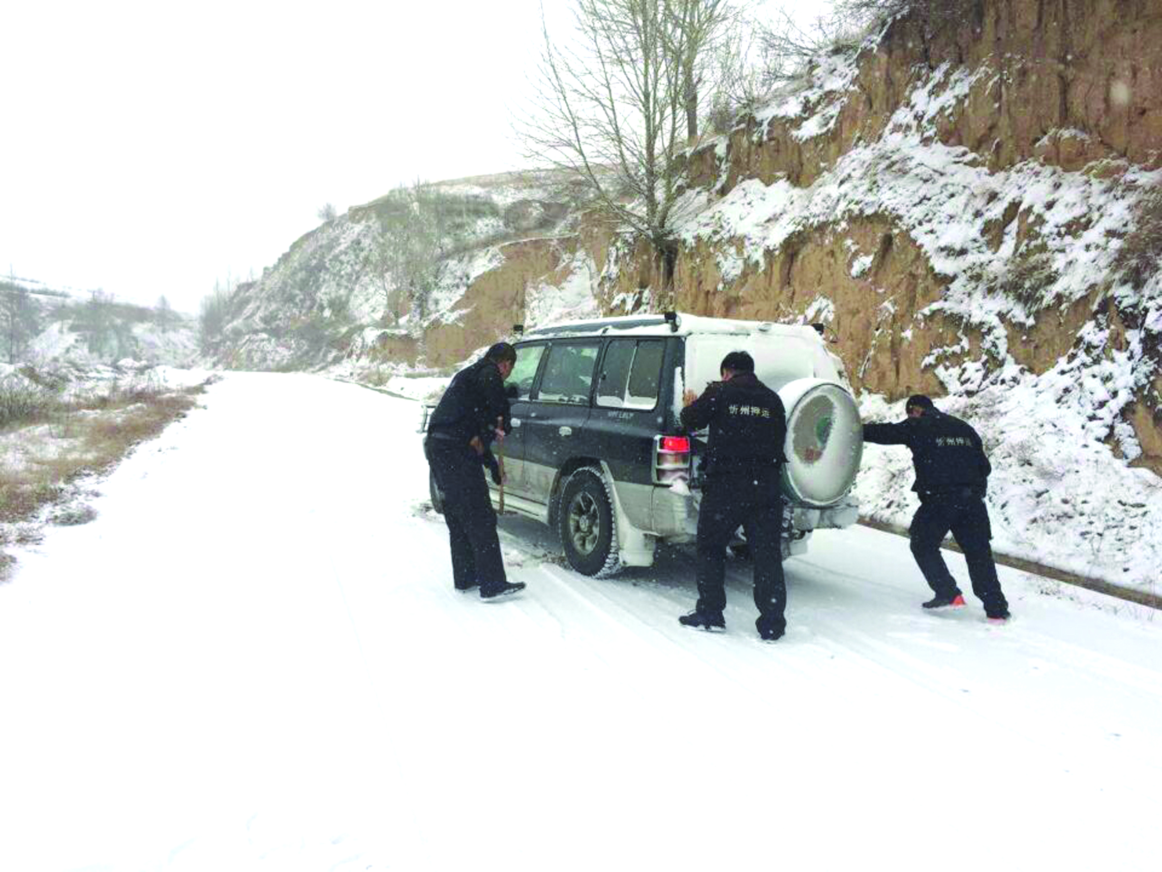行車到山區(qū)路段,大雪封路,車長馬上安排隊員下車鏟雪開路,就這樣邊走邊鏟,終于在預定時間內(nèi)給客戶單位安全送到。