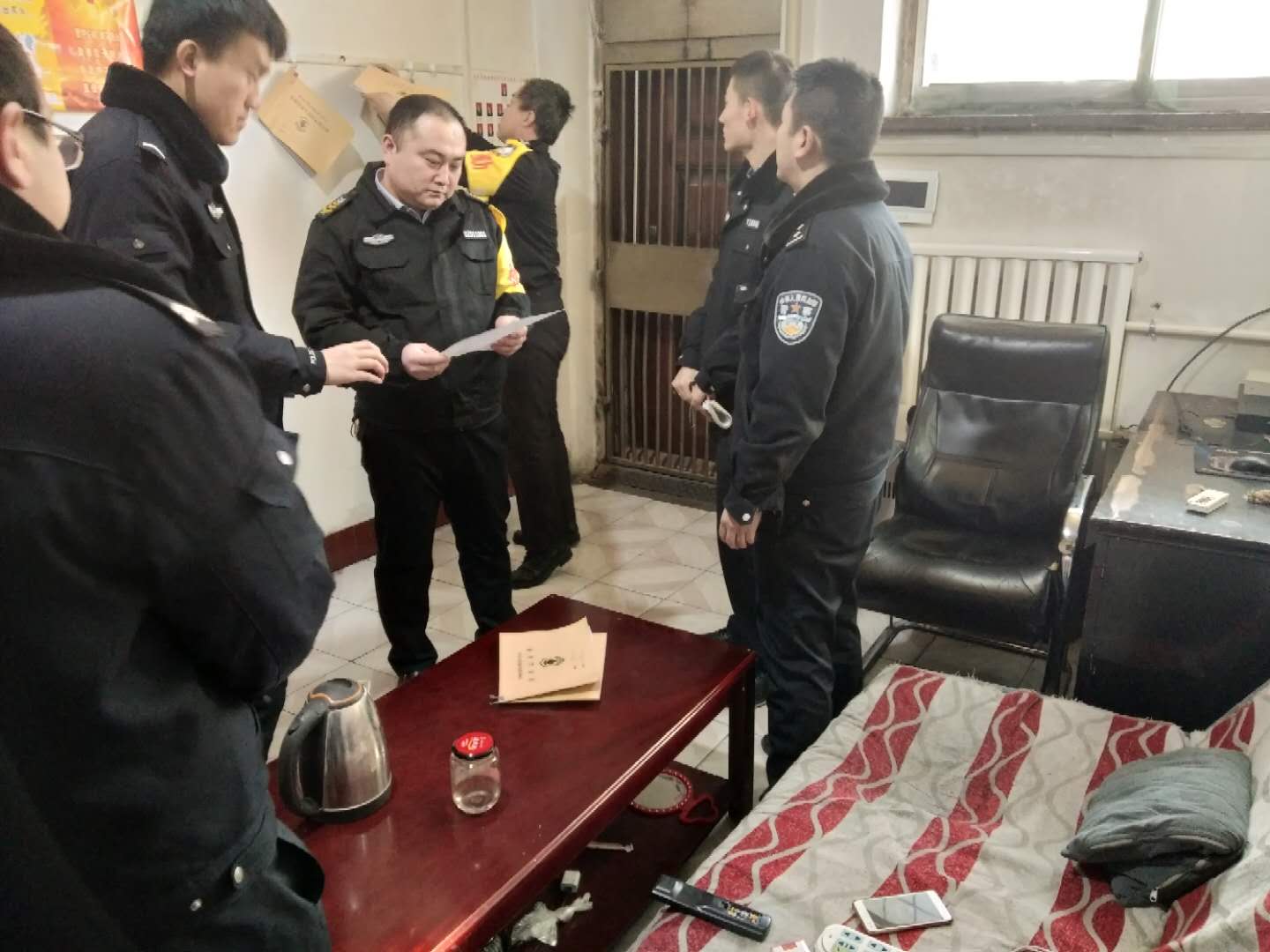 1月14日,偏關(guān)縣公安局治安大隊深入守押偏關(guān)中隊督導(dǎo)檢查安全工作。