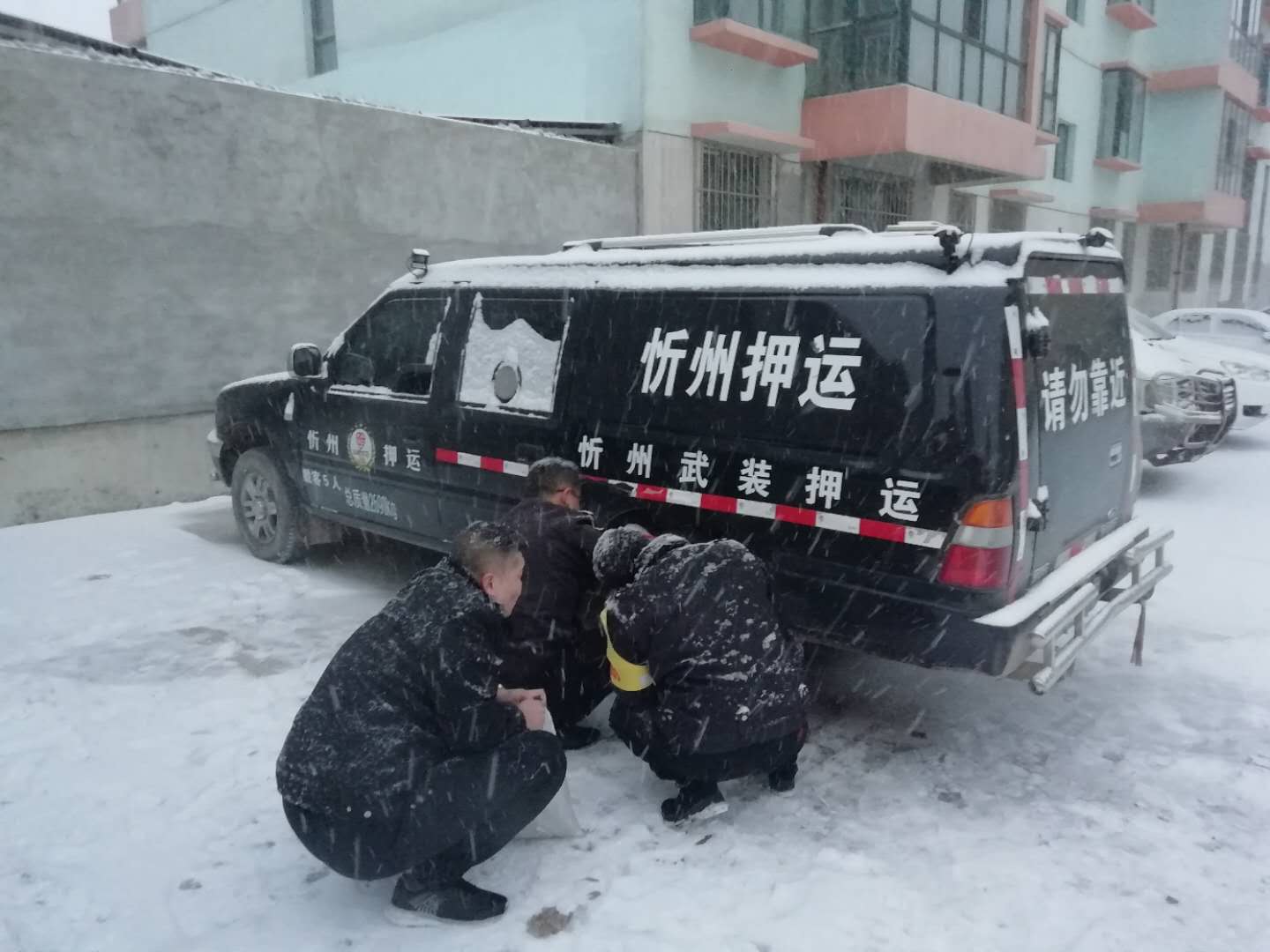 為預防押運車輛發(fā)生交通安全事故,切實加強降雪天氣條件下行車安全管理工作,確保金融守護押運工作穩(wěn)定,把公司安全工作落到實處,在開展押運工作中,守押基層中隊根據(jù)總公司處理雨雪天惡劣天氣預案,做了全面的安全部署,合理安排車輛行車安全,注意檢查車輛安全性能、行車車載設備及安全帶、防彈頭盔、防彈衣,技術員隨時觀察并記錄每輛車的運行路線以及周邊情況。車輛出發(fā)前,各車組采取添加防滑鏈,降低行駛速度等安全措施,把好安全關。中隊負責人和安全員分別跟車,在偏遠山路地區(qū)與車組共同接受這場風雪的考驗,給隊員們不怕遇到雨雪困難,有效的克服各種困難增加了堅定的信念,安全順利的完成運營網(wǎng)點勤務任務。