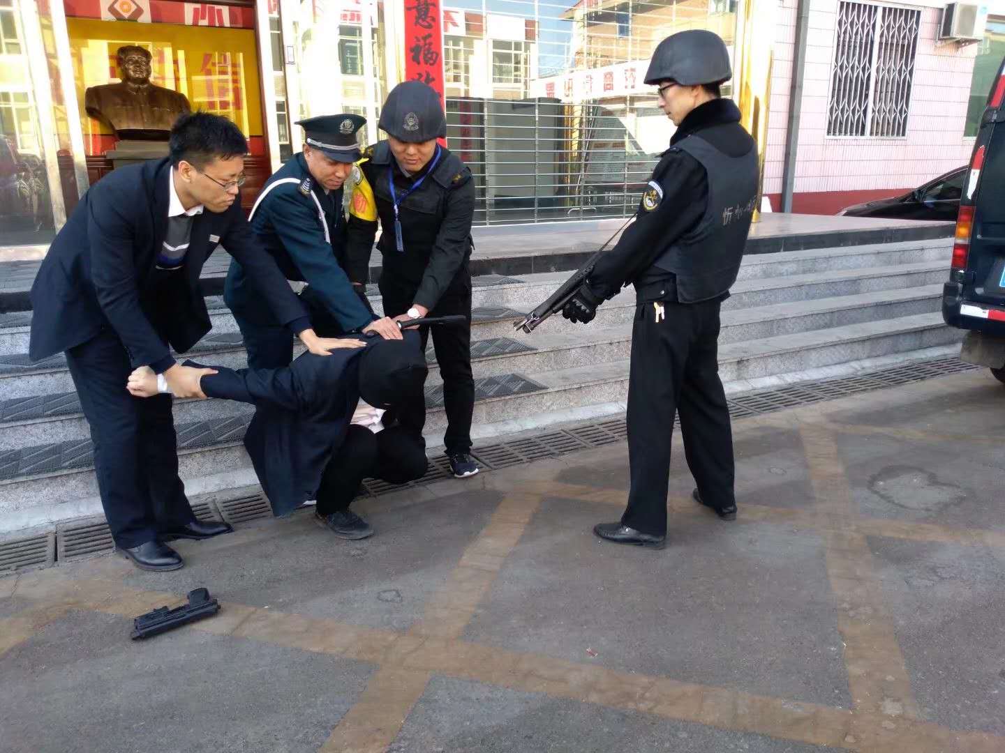 3月16日上午,守押繁峙中隊聯(lián)合農商行組織隊員進行了一次反搶預案演練。演練內容為運鈔車抵達網(wǎng)點后裝卸款箱時遭遇持械歹徒搶劫。整個演練過程,隊員準備充分、緊張有序、反應迅速、分工明確,拎包員迅速鎖閉金庫門,司機立即報警,押運員口頭警告無效后鳴槍示警,最終合力制服歹徒。
