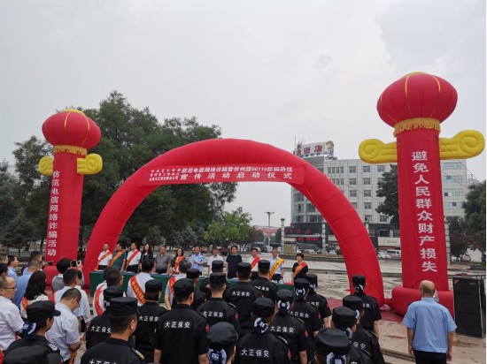 6月11日,山西大正牽手平安文化藝術(shù)公司在日月廣場(chǎng)參加由忻州市公安局、忻州市人民銀行和山西大正保安服務(wù)有限公司聯(lián)合組織開(kāi)展的“防范電信網(wǎng)絡(luò)詐騙暨忻州撥96110防騙熱線宣傳活動(dòng)啟動(dòng)儀式”。