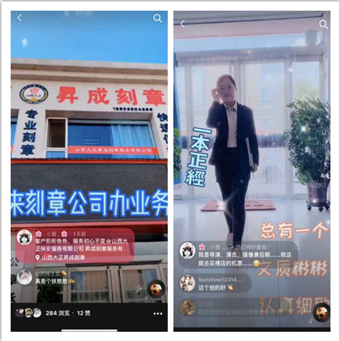 山西大正昇成刻章服務(wù)有限公司在這一背景下,結(jié)合業(yè)務(wù)運(yùn)營(yíng)實(shí)際,以拍攝公司宣傳片、制作有趣視頻、段子等多種方式,通過(guò)策劃、拍攝、錄音、剪輯、配樂(lè)、合成輸出等過(guò)程制作成片,在抖音、微信等云端平臺(tái)進(jìn)行發(fā)布,對(duì)公司進(jìn)行全方位宣傳。以期利用抖音“短”視頻平臺(tái)優(yōu)勢(shì),將信息及時(shí)適配用戶(hù)群體,發(fā)揮企業(yè)宣傳“長(zhǎng)”效應(yīng)。